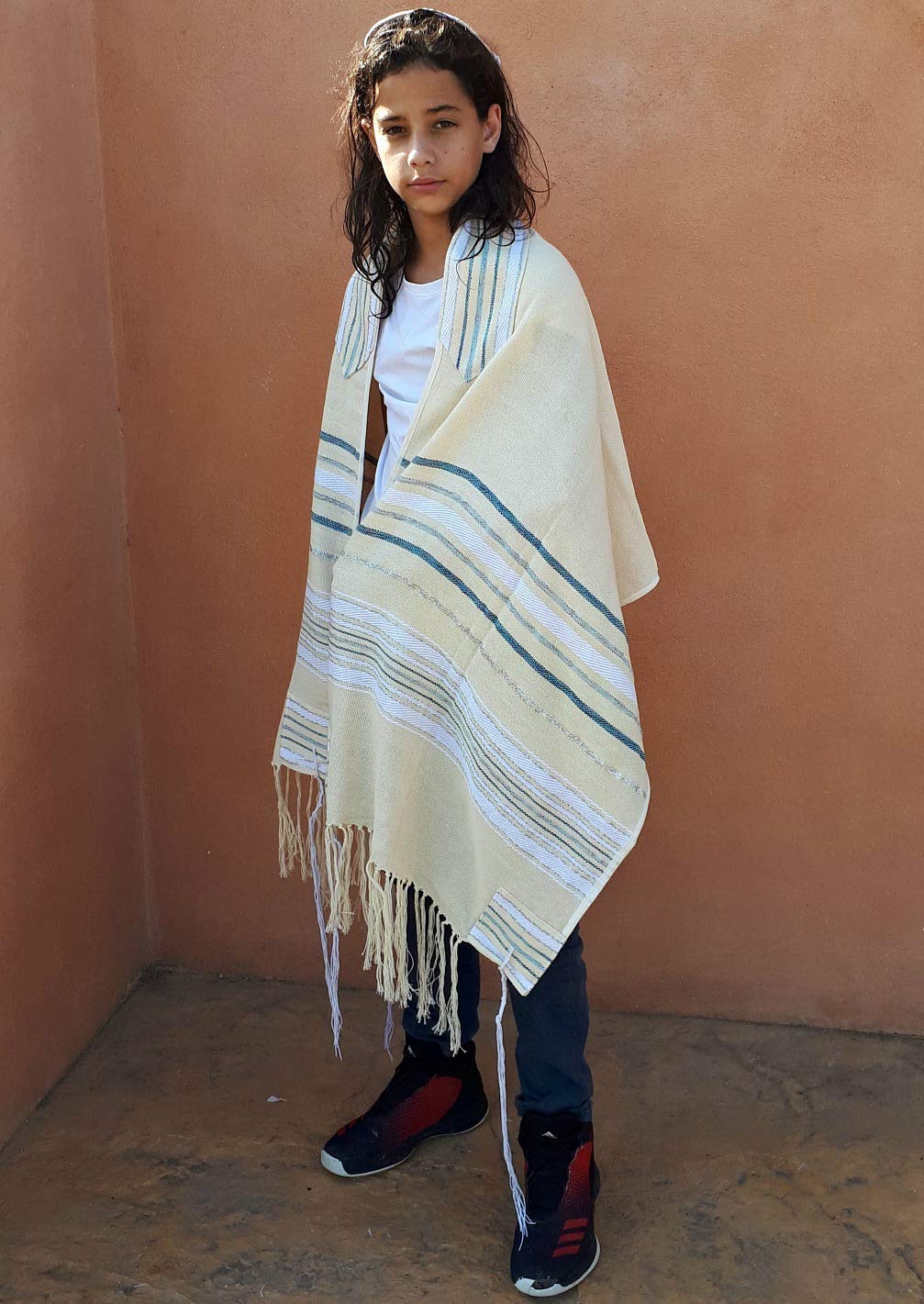 Bar Mitzvah Shawl - The ceremonial prayer shawl is placed around the shoulders of the bar/bat.